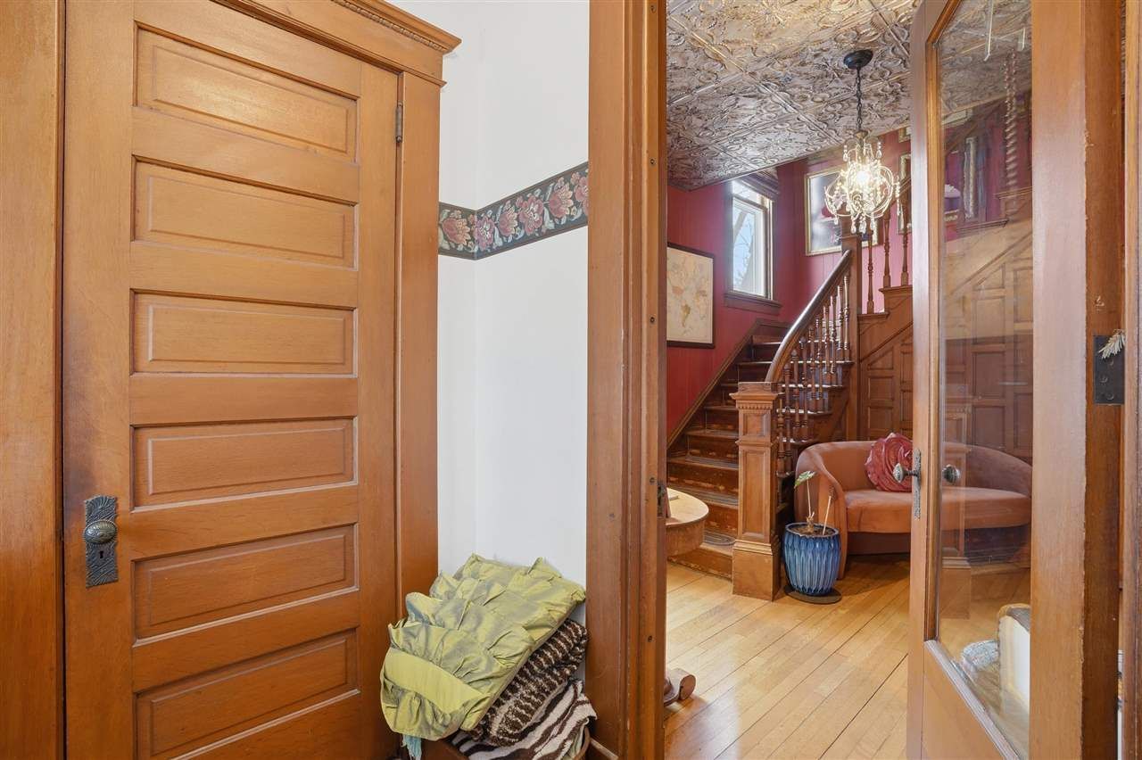 Timeless character and modern updates come together in this stunning historic home situated on a beautifully landscaped 1.12-acre double lot directly across from the park connected to the football track stadium and children's ball field. Enjoy the convenience of location and the charm of a truly special setting. A welcoming foyer with the original open staircase highlights the craftsmanship found throughout. The main level offers a cozy gathering room with fireplace, formal living and dining rooms, a den, half bath, and a spacious laundry/mudroom. The updated kitchen features hard-surface countertops, a breakfast bar, and opens to a bright family room with fireplace surrounded by windows overlooking the yard. Upstairs includes five bedrooms and an updated full bath with tile floors and relaxing soaking tub. The finished attic provides a potential sixth bedroom and additional entertainment space. The full basement offers storage, entertaining space, and a partial bath. Outdoor living shines with mature trees, a wrap-around front porch, back deck, and patio. Detached 2-car garage, plus 2 car heated and cooled shop, garden shed, and in-ground sprinkler system complete this exceptional property.