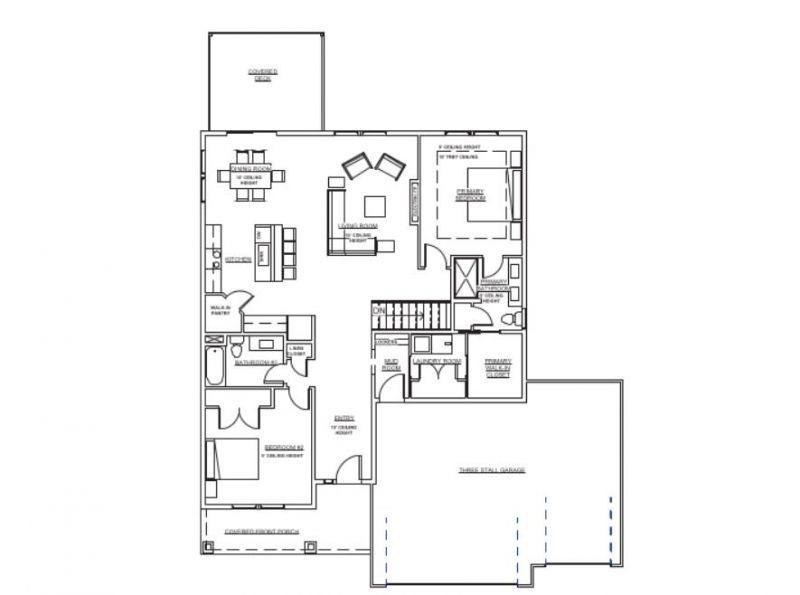 This thoughtfully designed ranch home offers an open-concept main level that boasts 10' ceilings throughout the entry, living room, & dining area, creating an airy, expansive feel. The chef-inspired kitchen features a large center island, a dedicated walk-in pantry with wrap-around shelving, & high-end finishes. Retreat to the primary suite, highlighted by a trey ceiling & a private bath that flows seamlessly into a spacious walk-in closet?with the added convenience of direct access to the main-floor laundry room. The finished lower level doubles your entertainment options with a massive rec room, complete with an electric fireplace & plumbed for a future wet bar. Two additional bedrooms & a full bath make this the perfect space for guests or a home office. Enjoy outdoor living on the covered deck. With energy-efficient construction, a gas fireplace, & a 3-car garage, this home perfectly blends style & functionality.