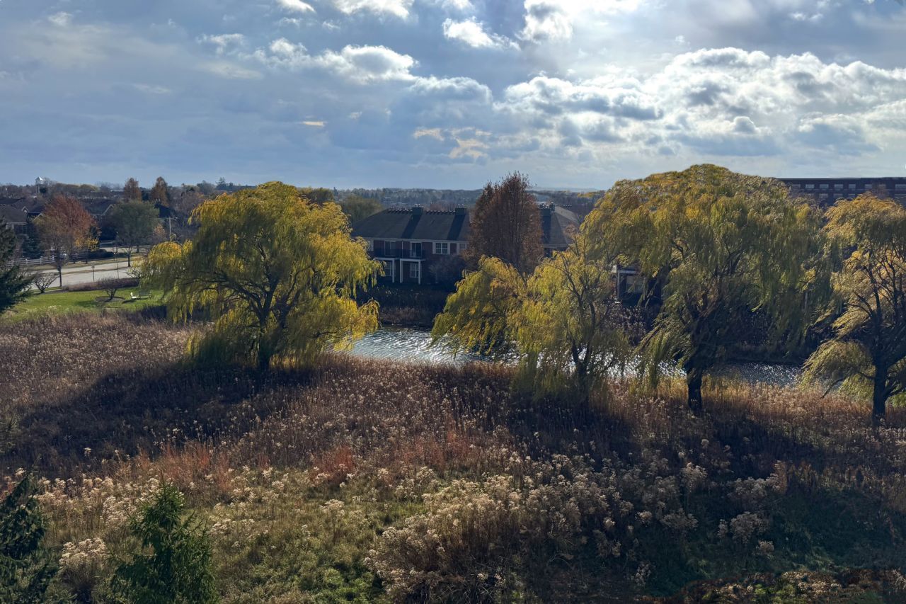Welcome to The Lodge of Northbrook, a vibrant, independent 55+ community offering comfort, convenience and maintenance-free living. Discover the highly sought-after Ironwood floor plan, one of the largest residences available at 1,708 square feet. Move-in ready with brand-new carpet, luxury flooring, and fresh paint, in a modern color palette that blends beautifully with the stunning renovation of the 2220 building. This spacious third-floor home features two bedrooms, a den plus an outstanding view of a peaceful meadow and pond. Relax on the large private balcony while enjoying wildlife sightings. Inside, the sunny southern exposure fills every room with natural light throughout the day. The beautifully designed kitchen offers stainless steel appliances, granite countertops, and an impressive 8-foot island - perfect for cooking and entertaining. The open-concept kitchen flows seamlessly into the living and dining areas. Stylish, wide, luxury vinyl plank flooring extends from the kitchen and living room into the den. This bonus room easily serves as a home office, hobby room, or space for a live-in caretaker. The expansive primary suite features a large walk-in closet and ensuite bath with a handicap-accessible shower and dual-sink vanity. A generously-sized second bedroom is located on the opposite side of the home for added privacy and includes its own large walk-in closet. A full hall bath with tub and shower completes the layout. Additional highlights include: A full-size washer and dryer in a dedicated laundry room. Two large foyer closets plus two linen closets provide added storage. Conveniently located near the elevator and a walk-in, extra storage locker. A heated parking space located near the garage exit. Residents also enjoy onsite dining, a wellness center, workshop, community gathering rooms, walking paths, and an outdoor patio. A lifestyle director coordinates weekly activities, and complimentary weekday transportation is available within an 8-mile radius. The monthly assessment covers property taxes, insurance, utilities, internet, basic cable, exterior and interior maintenance, with income qualification required for residency. The Lodge is conveniently located near shopping, restaurants, a library, senior center, golf, tennis, parks, and the expressway for easy access to all the cultural activities the Northshore and Chicago has to offer.