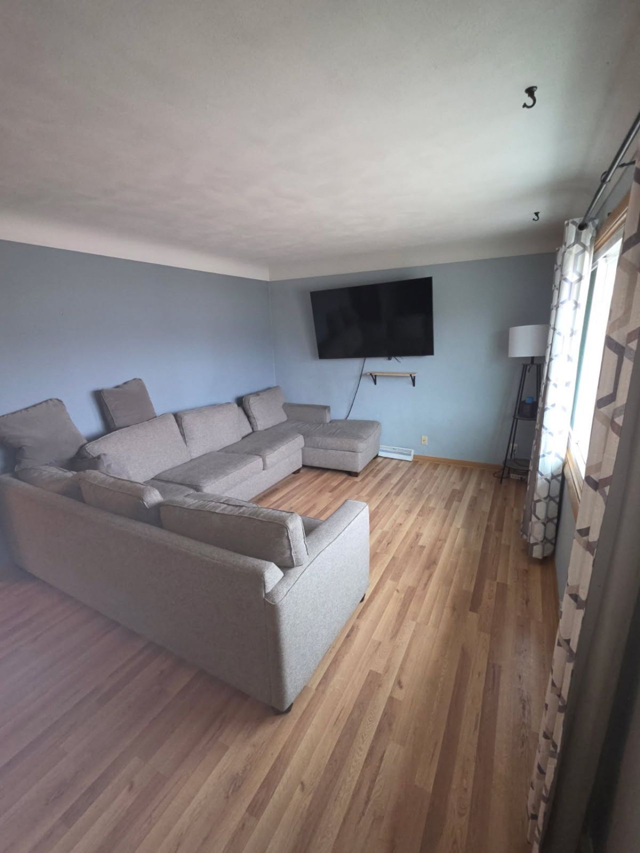 Make this home your own. This inviting property features 2 main-level bedrooms and a full bath with recently added washer and dryer hookups main level, additional washer and dryer hookups in lower level. Kitchen offers stainless steel appliances and beautiful hardwood floors throughout much of the home. Lower level includes a 3rd bedroom, shower, stool, and vanity, along, with built-in storage and spacious family room offering great potential for additional living or entertainment space. The oversized garage is approximately 616 sq ft providing ample room for multiple vehicles, storage or recreational toys. The home sits on a fully fenced yard, ideal for pets or outdoor enjoyment. Recent updates include central air unit, new roof boots, garage door with opener, and stove vent fan. For added security, the home is equipped with cameras on all corners, each with its own solar charger, plus a floodlight camera. Conveniently located minutes from downtown, shopping, and more. Home offers comfort, functionality and opportunity.