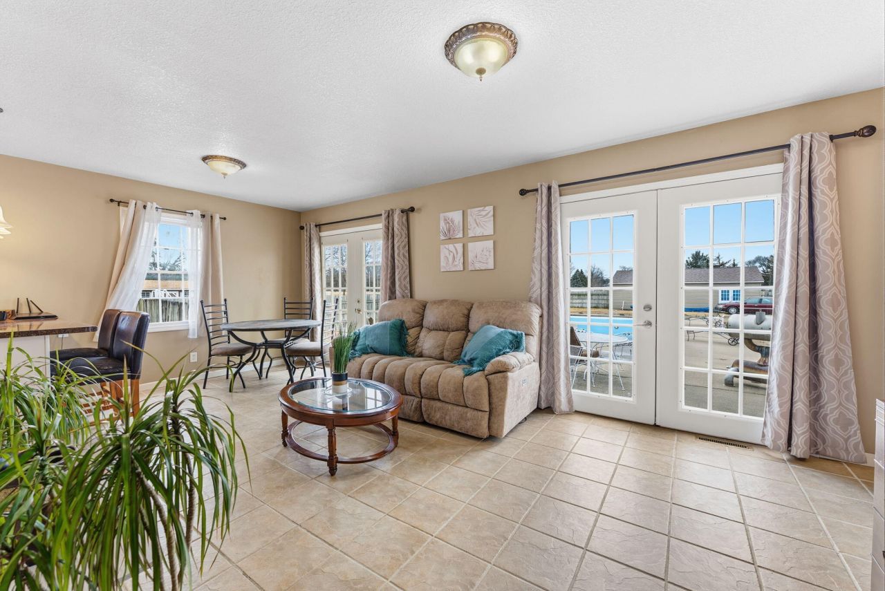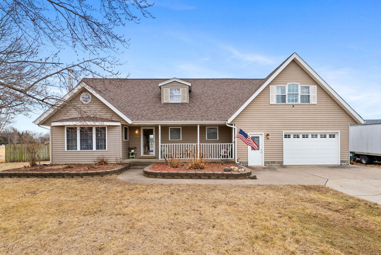 You'll love this beautiful Cape Cod home located on a quiet street in Fruitland, IA! This 4-bedroom, 3-bath home features an updated kitchen with abundant cabinetry and counter space, a living room with tile flooring and French doors that lead directly to the large backyard. Main floor includes a bedroom, full bath, and laundry room with built-ins. Upstairs offers a spacious primary suite with his and hers closets and master bathroom. There are two additional bedrooms and 1/2 bathroom upstairs. One car attached garage with a breezeway that provides mudroom or storage space and a two car detached garage with plenty of workshop space. The backyard features a privacy fence, patio for entertaining and an in ground pool.