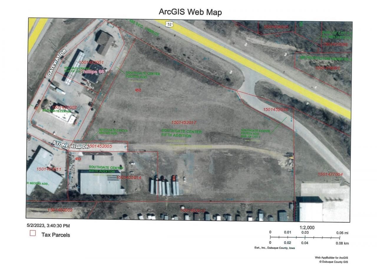 C-3 zoned commercial land for sale in Dubuque, Key West area. Great location, many permitted uses, and size can be customized to fit your needs. Located on SE corner of Hwy 61/151 and Hwy 52 behind Kwik Stop and Dairy Queen. City of Dubuque water and sewer. Property lines are drawn in picture for example purposes only. Lots have not been platted or surveyed. The total land available is 6.87 acres which can be divided depending on buyers needs. Price $235,000 per acre. Road is private with dues currently $125. per month for maintenance, snow removal, street lights, and storm water.