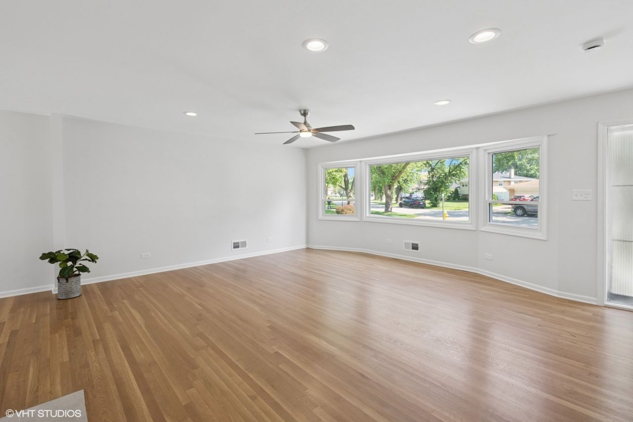 Step into timeless sophistication with this expertly renovated home, where intuitive design meets elevated living across four beautifully finished levels. From the moment you enter, the warm glow of hardwood flooring, a guest coat closet, and curated lighting create a sense of invitation and calm. The main level flows effortlessly-anchored by a luminous living room with a bay window, recessed lighting, and ceiling fan-into a dining area that opens through sliding glass doors to a private brick paver patio. The heart of the home is a chef-worthy kitchen outfitted with sleek porcelain tile flooring, shaker soft-close cabinetry, and a suite of Frigidaire stainless steel appliances including a five-burner gas cooktop and vent hood. A quartz island with seating for four offers the perfect perch for casual meals or spirited conversation. The adjacent main-level bedroom features hardwood floors, a ceiling fan, and double-door closet, while the full bath is richly appointed with a quartz vanity, tile-surround tub/shower with dual sprays, and a niche for modern convenience. Upstairs, a skylit landing leads to a serene primary suite with hardwood flooring, dual walk-in closets, and a spa bath complete with dual quartz vanities, porcelain and penny tile finishes, and a luxurious dual-spray shower. A secondary ensuite bedroom boasts its own chic bath with porcelain tile surround. The lower level is an entertainer's dream with a stylish family room featuring LVP flooring, a custom wet bar with quartz counters, Kohler sink, and Avanti beverage fridge-plus a mudroom with bench seating, coat hooks, and direct access to the backyard. The fully finished basement offers remarkable versatility with a spacious recreation room, fourth bedroom, bonus room, full bath with elegant tile finishes, dedicated laundry with Whirlpool washer/dryer and utility sink, and ample storage. With upgraded systems including a 200-amp electrical panel, Heil furnace with Aprilaire humidifier, new Rheem 75-gallon water heater (2025), and sump pump, this home delivers both form and function. A detached 2-car garage completes the picture. This is not just a home-it's a statement, where every level, finish, and fixture whispers, you've arrived.